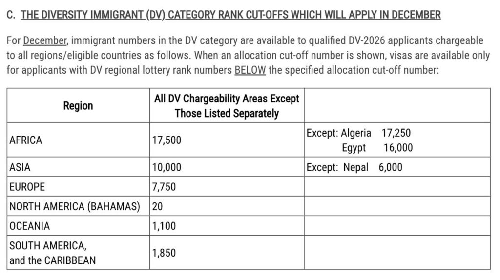 グリーンカード抽選 DV-2026の2025年12月面接予定が発表になりました。今回は、DV2026ケースナンバーの第3回目の発表になります。