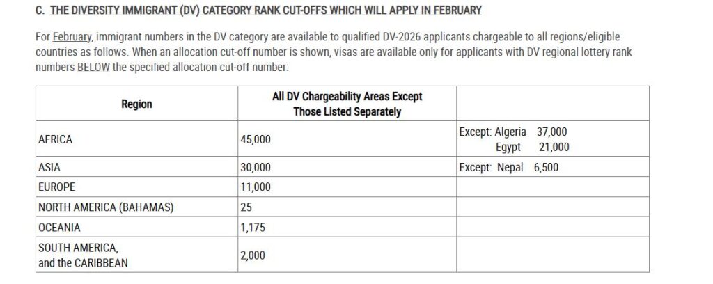 上記ケースナンバーは、2025年5月に当選発表されたDV2026に関する第5回目の発表です。10月〜12月まで3ヶ月連続で同じ数字が並んでいましたが、1月に入り5000番が追加。2月で15000追加となり、Currentも視野に入ってきました。